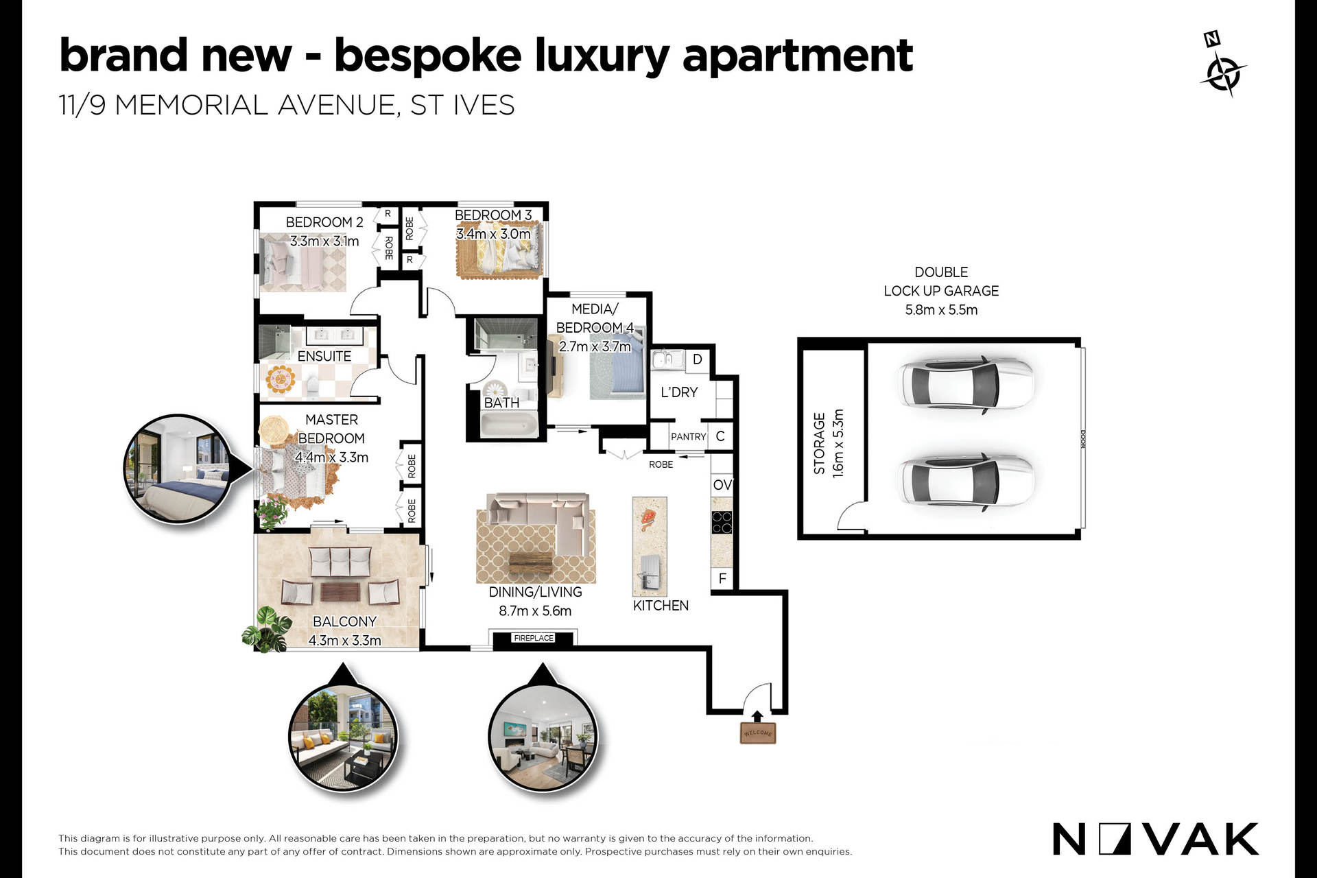 TIMELESS ELEGANCE, LUXURY AND CONVENIENCE!!! | BRAND NEW - Bespoke 190m2 of Luxury apartment living | RARE combination of modern elegance and lifestyle convenience | Premium location in the heart of St Ives Village | Step inside with flowing European Oak timber floors & zoned air conditioning | 5 Star hotel calibre fit & finishing throughout | MASSIVE family entertaining & dining zones with centrepiece fireplace | Effortless flow through to the private North/East facing balcony | Gourmet, designer kitchen with no expenses spared | Flowing stone bench tops, Miele appliances & Parisi fittings | Custom made joinery, smart soft close storage & incorporated wine cooler | Spacious master bedroom with largest robes and immaculate ensuite | Large additional bedrooms with built in robes & incredible natural light | 100% premium wool carpet | Versatile 4th guest bedroom or the ideal media / homework zone | LUXE family bathroom, large bathtub, shower and feature LED lighting | Imported Italian tiles with comfort underfloor heating | Large internal laundry plus bonus storage | HUGE 32m2 automatic double lock up garage | BONUS 10m2 storeroom with direct garage access | This is the epitome of luxury living with everything at your door!!! | An absolute must see!!!
