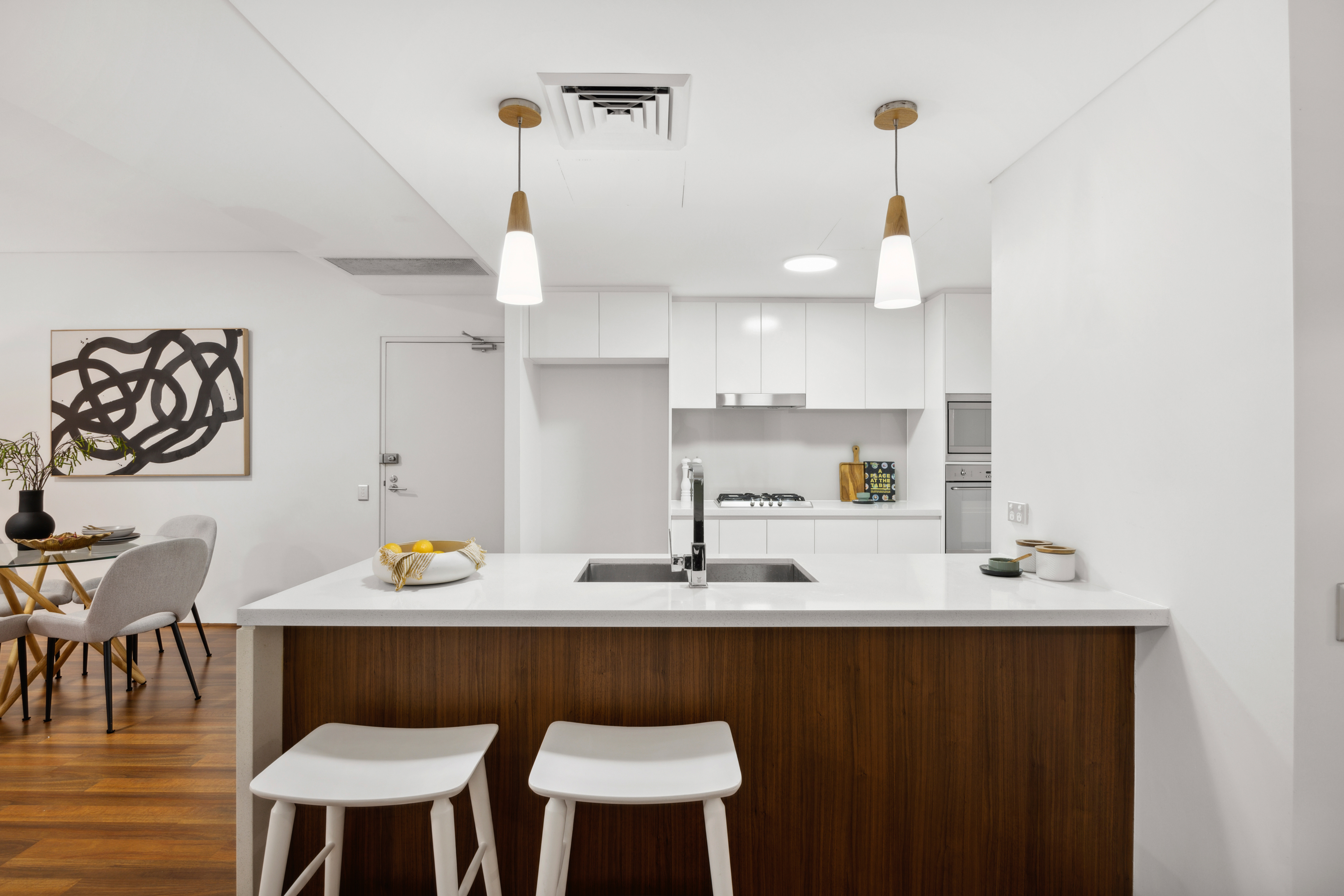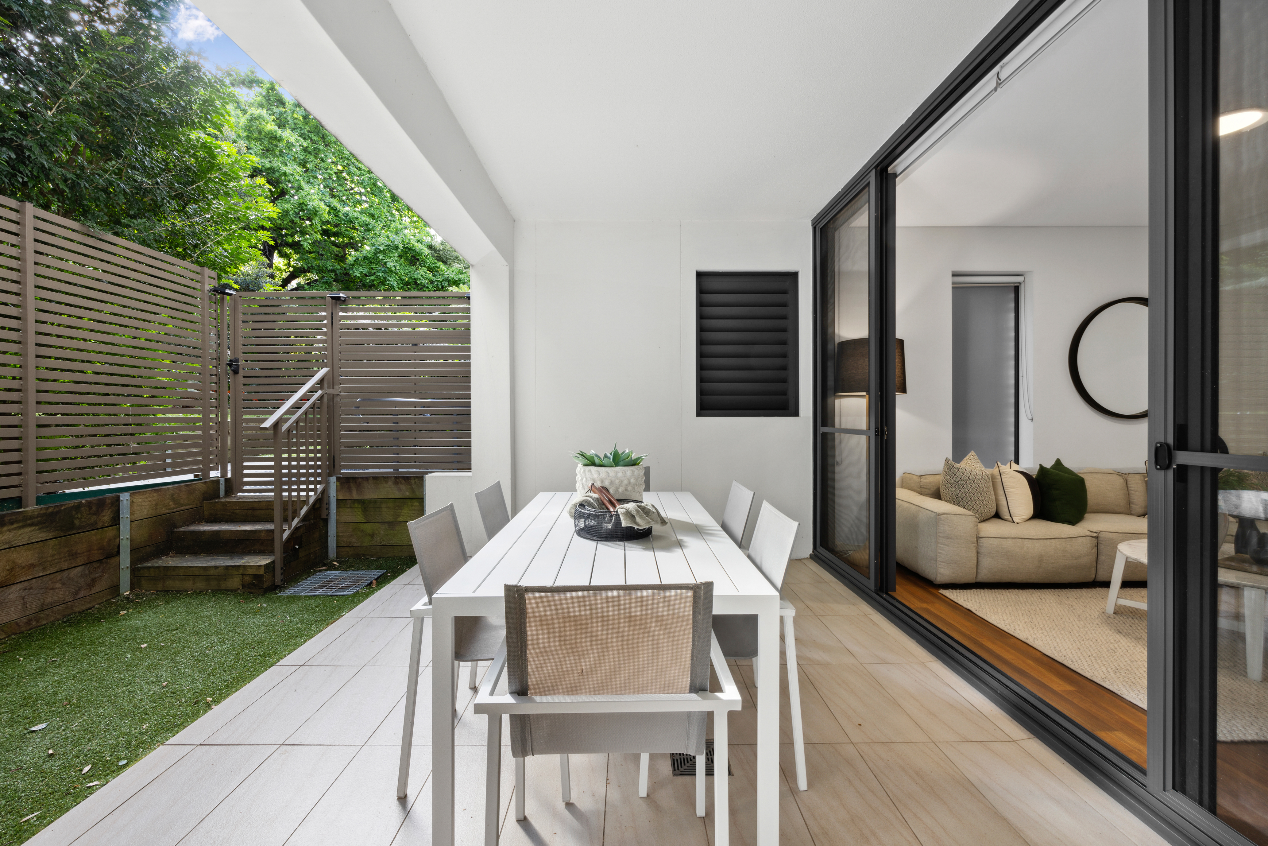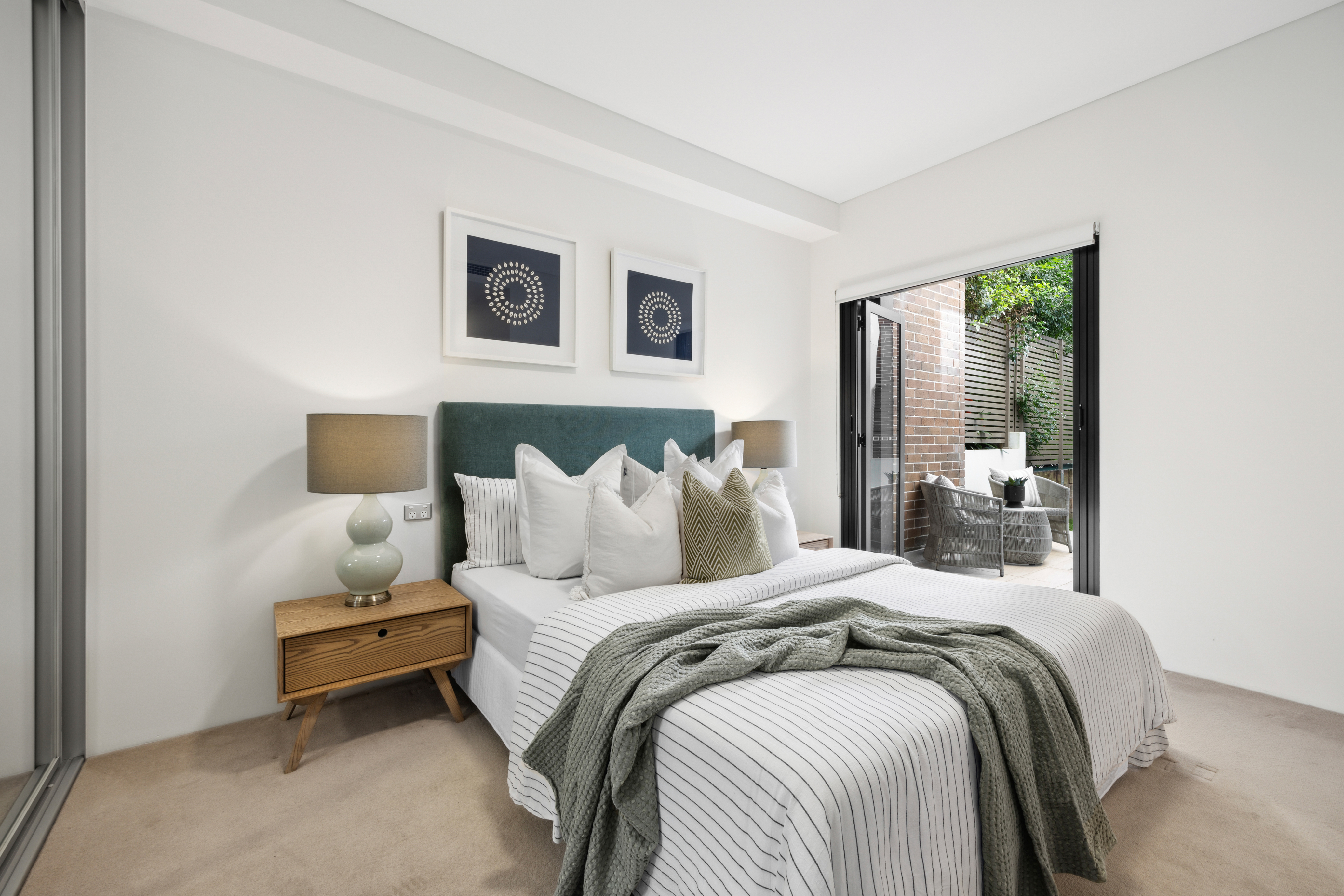 * Expansive free flowing floorplan under high ceilings * Generous living and dining rooms, gas bayonet * Wall of sliders opens to the on-title terraces and garden * Gourmet stone topped gas kitchen with Smeg appliances * Ducted a/c, storage cupboards, contemporary bathrooms * Two queen-sized bedrooms both fitted with built-in robes * Master with an ensuite and French doors to the terrace * 2nd bedroom opens to the terrace, internal laundry